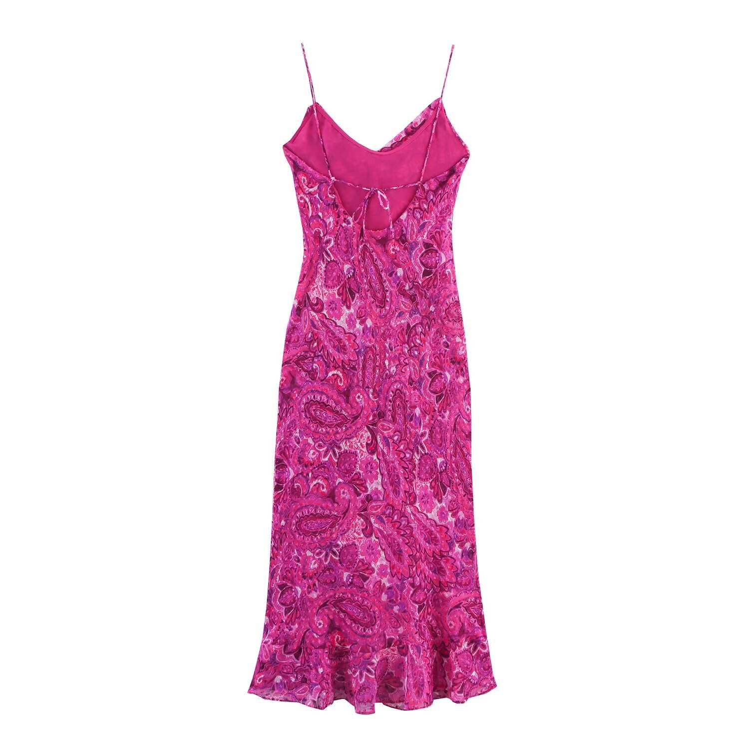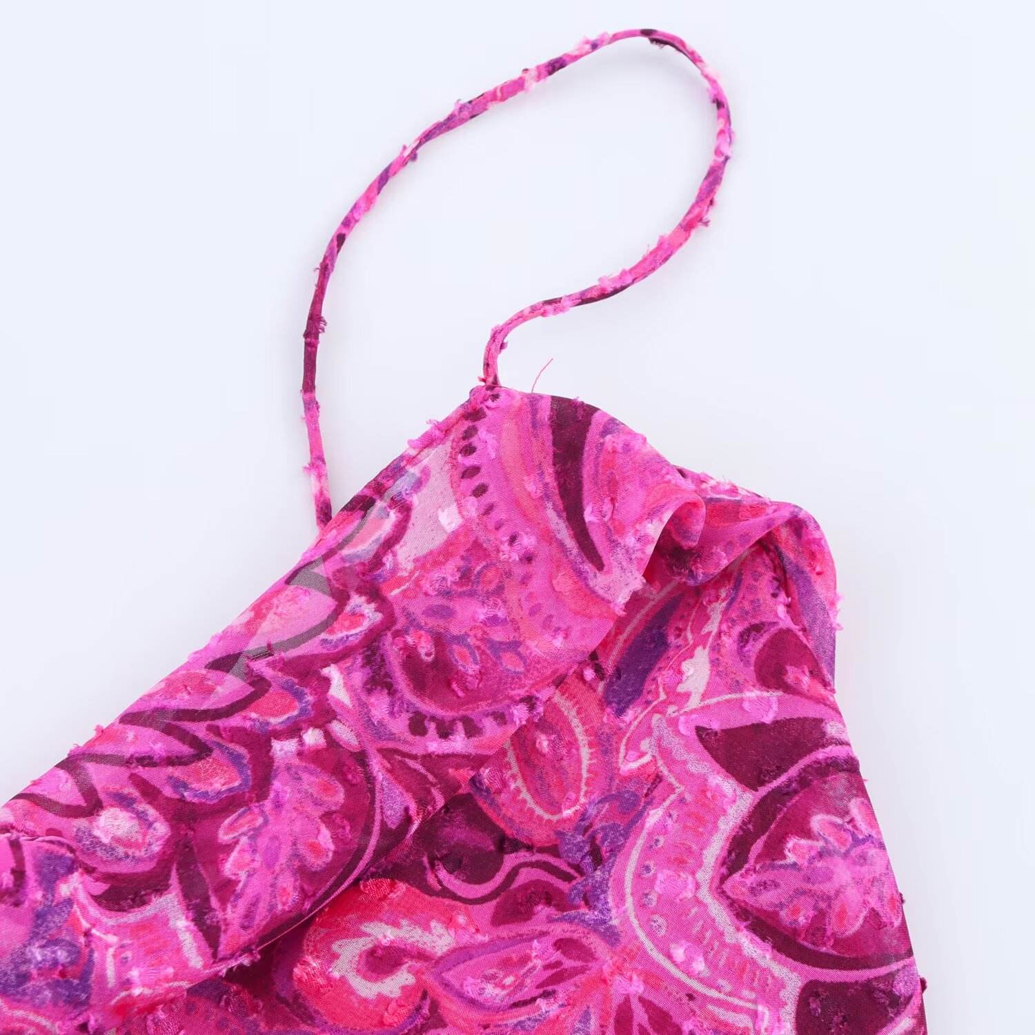Pink Cowl Neck Spaghetti Strap Midi Dress