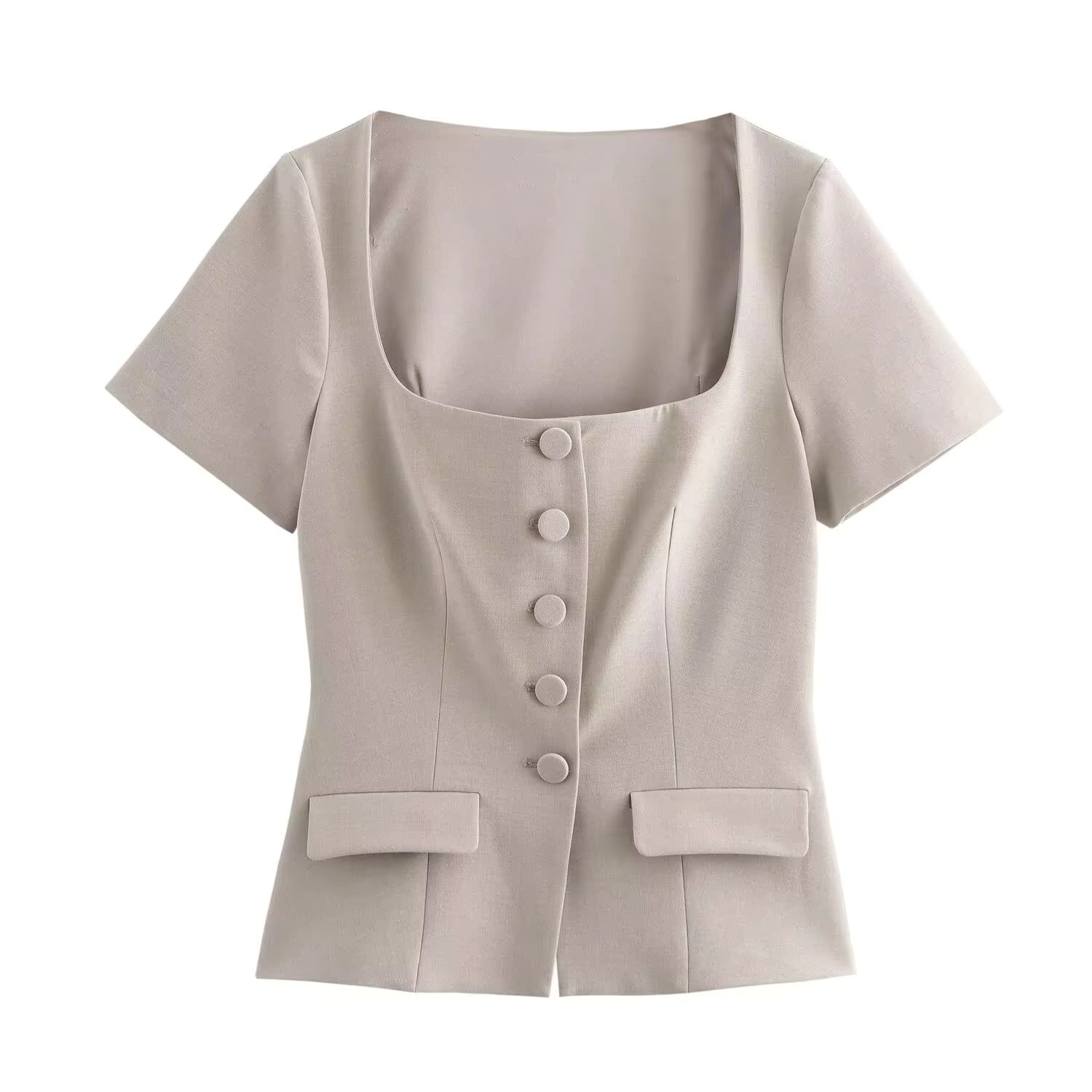 Elevate your everyday look with this beige square neck top, designed for women who love subtle elegance. Crafted with soft, breathable fabric, this top features a flattering square neckline, half sleeves, and functional front buttons that add a touch of charm.
