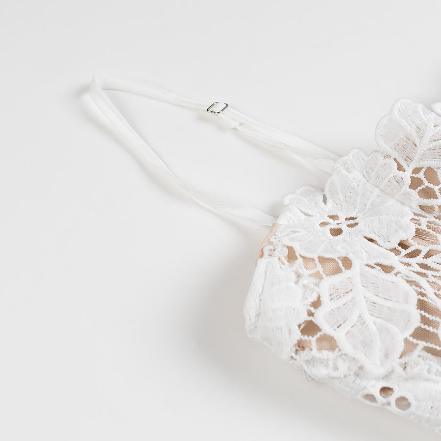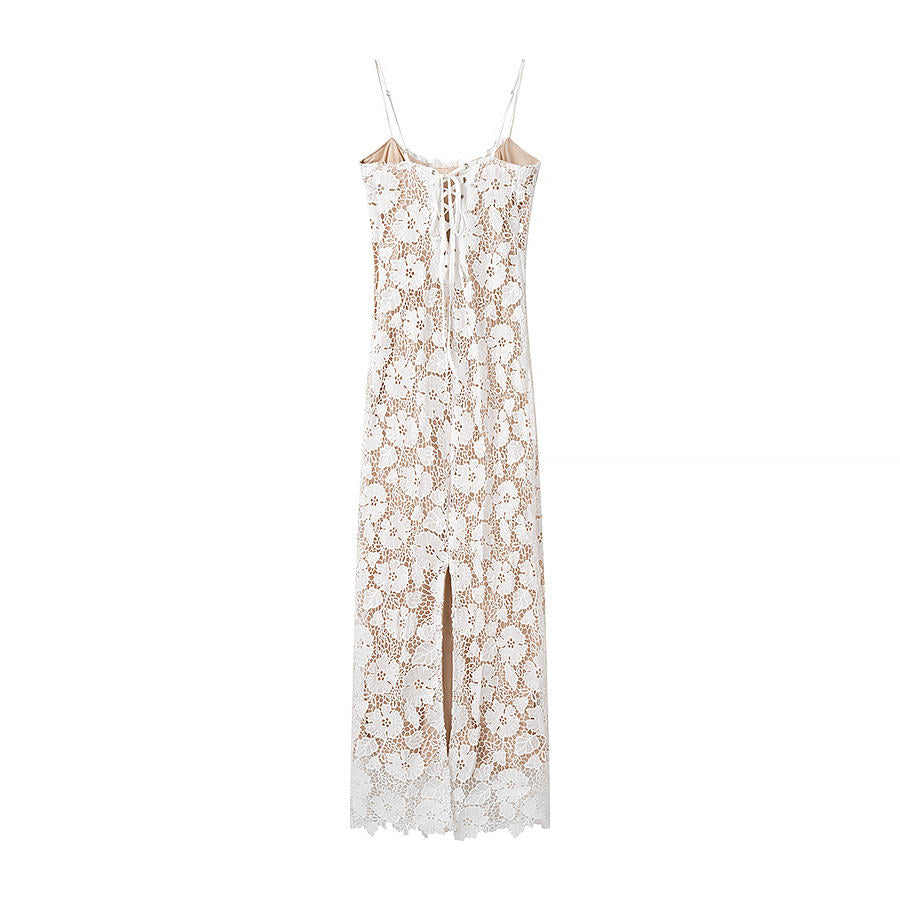 White Floral Lace Slip Dress with Spaghetti Straps
